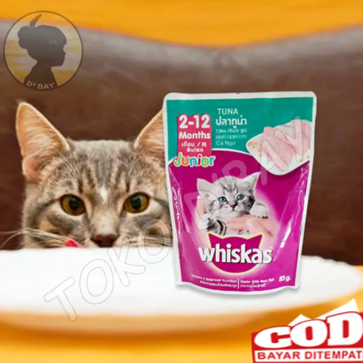 WHISKAS pouch JUNIOR TUNA 2 - 12 bulan 85GR makanan kucing basah. Makanan kucing kampung makanan anak kucing kampung membuat makanan kucing kampung umur 2 bulan Makanan sehat untuk kucing kampung Makanan kucing kampung Murah httpskucing co idmakanan-kucing-kampung542 makanan alami kucing kampung kucing liar makannya apa jenis makanan yang disukai ku pakan kucing kampung yang disukai. Pada brand Whiskas ini dia menyediakan makanan anak kucing khusus yang masih berumur 2 bulan sampai 12 bulan dan kita bisa membelinya dengan kisaran harga Rp6500-Penggunaan tahu yaitu tahu putih sebanyak 3 potong saja untuk pencampuran 1 bungkus whiskas.